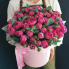Потрясающая шляпная коробка с кустовыми пионовидными розами и эвкалиптом